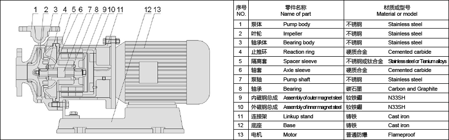 無泄漏輸送腐蝕性介質(zhì)的理想泵型,全國磁力泵聯(lián)合設(shè)計的優(yōu)化產(chǎn)品,可以直接取代IH型化工流程泵。